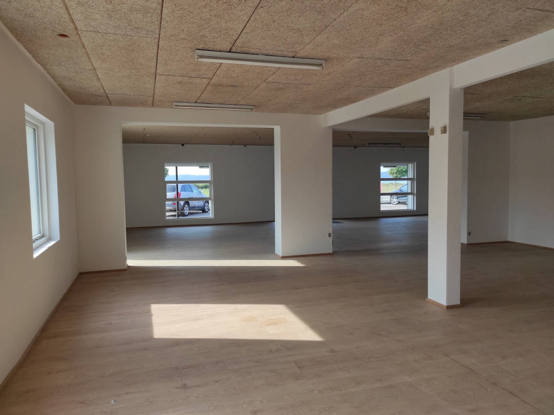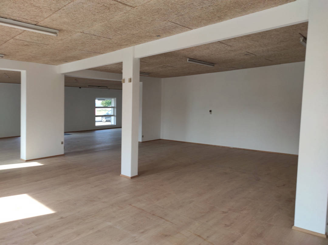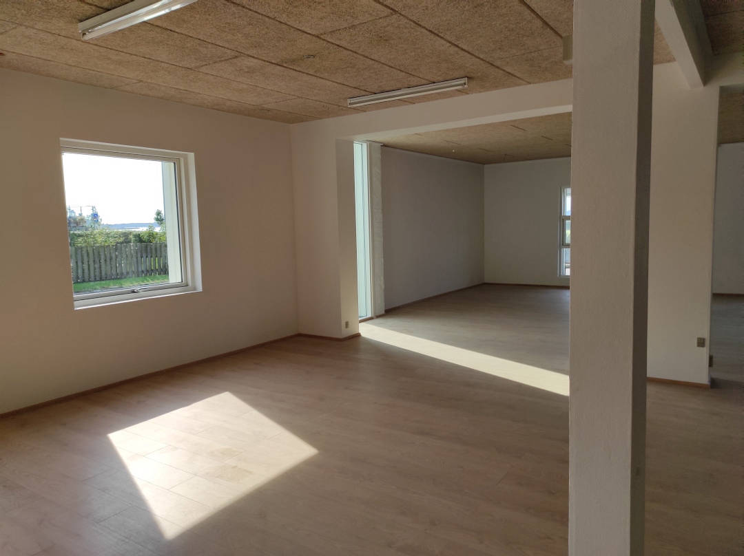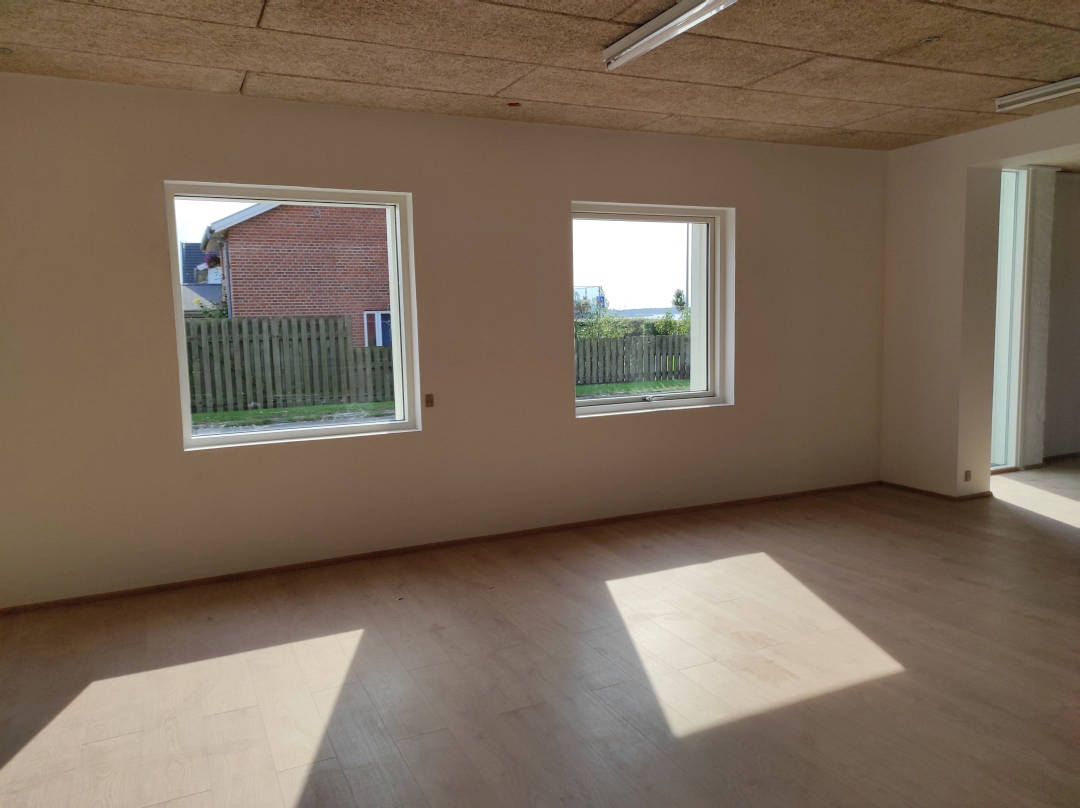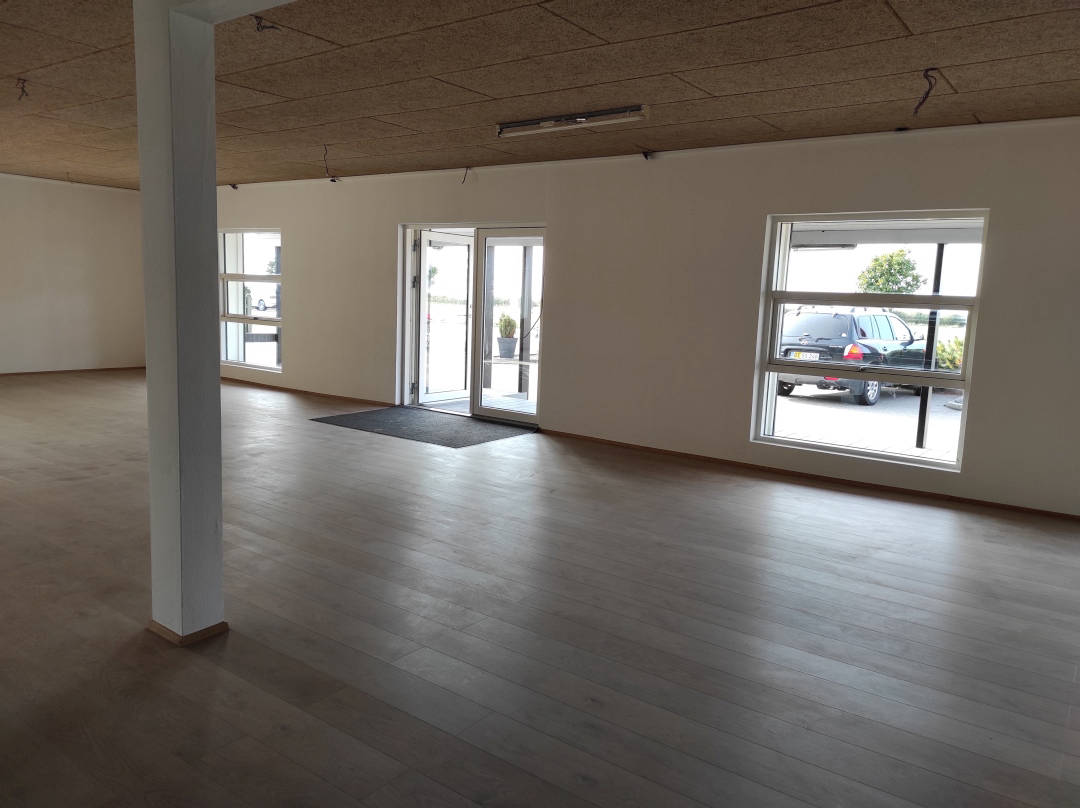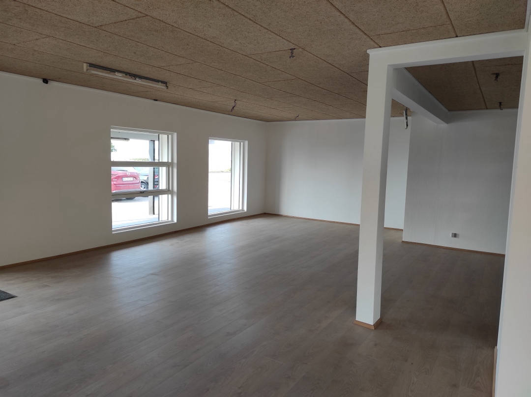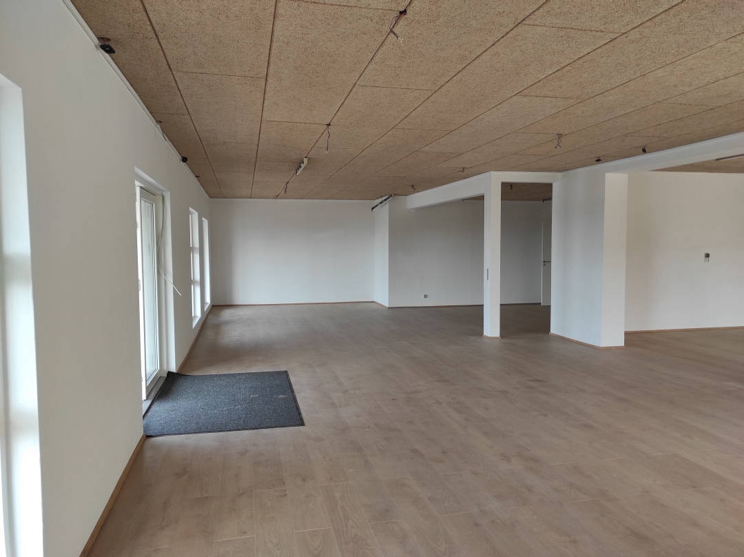Se videon til højre, og får en gennemgang af lokalet indvendigt. Lokalet fremstår lyst og flot, med nye gulve overalt. Man vil nemt kunne opdele lokalet i mindre rum/kontorer hvis det ønskes. Til lokalet er 2 x toiletter, samt 2 tekøkkener der kan anvendes til frokoststure eller mindre mødelokale.