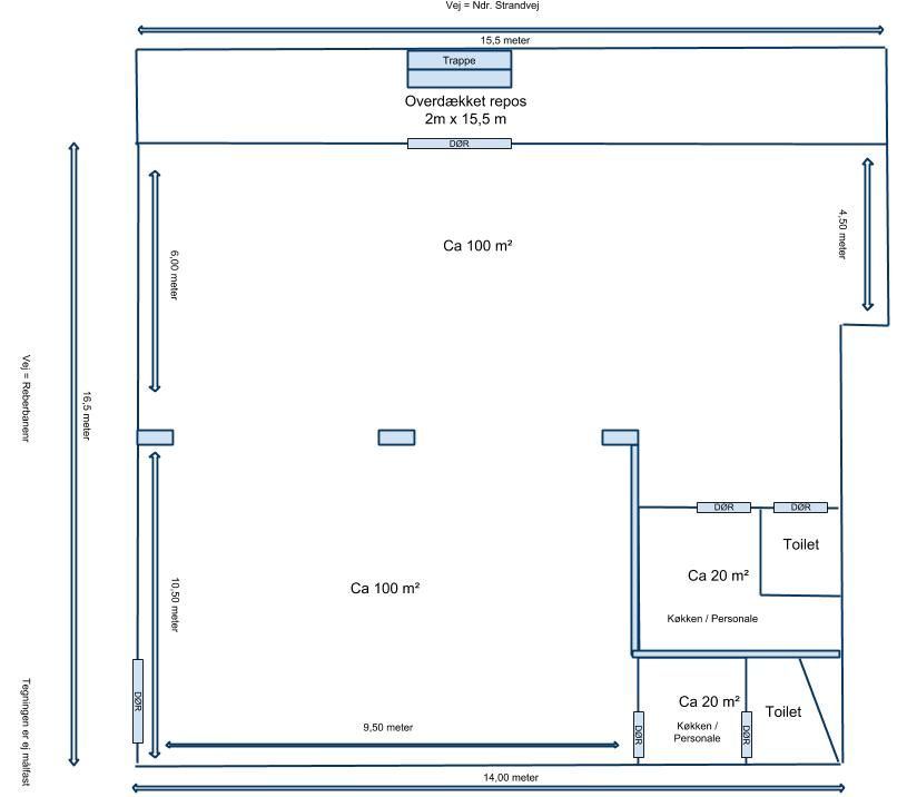 Bemærk at lokalet ikke udlejes til salg af uemballerede fødervarer, produktion af fødevarer, restaurant/cafe og lignende.